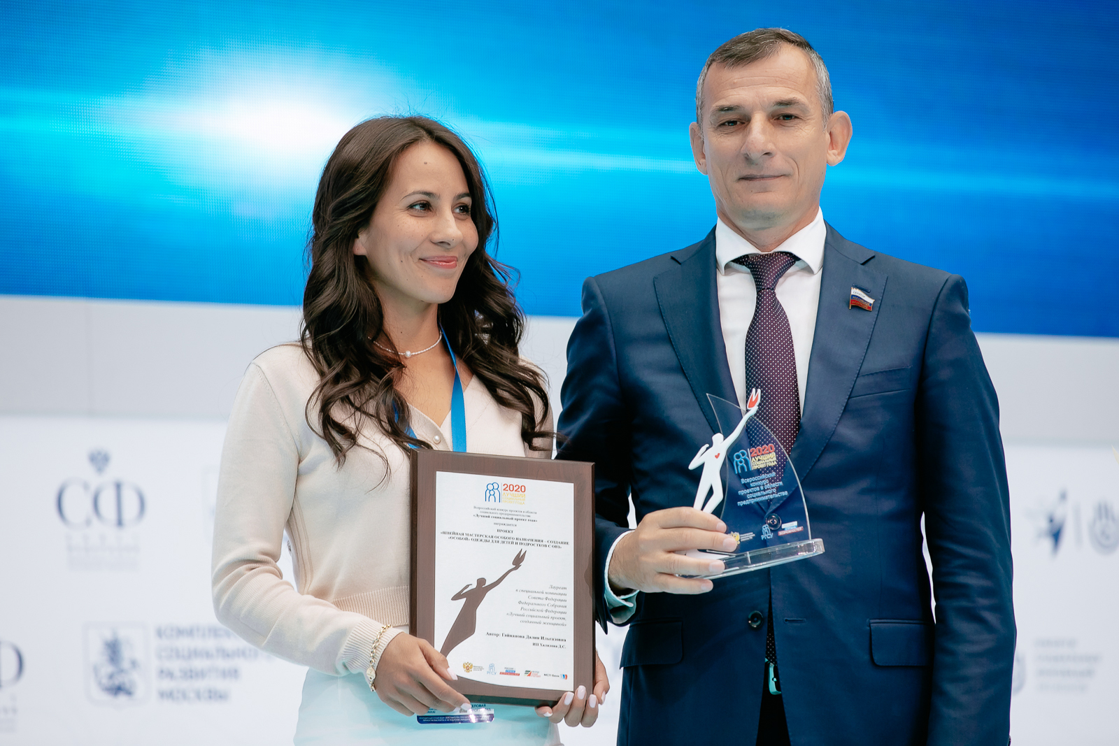 В церемонии награждения приняли участие Татьяна Илюшникова, заместитель Министра экономического развития Российской Федерации Мухарбек Барахоев сенатор, представитель от исполнительного органа государственной власти Республики Ингушетия, Станислов Иванов, и.о. генерального директора ГБУ «Малый бизнес Москвы».