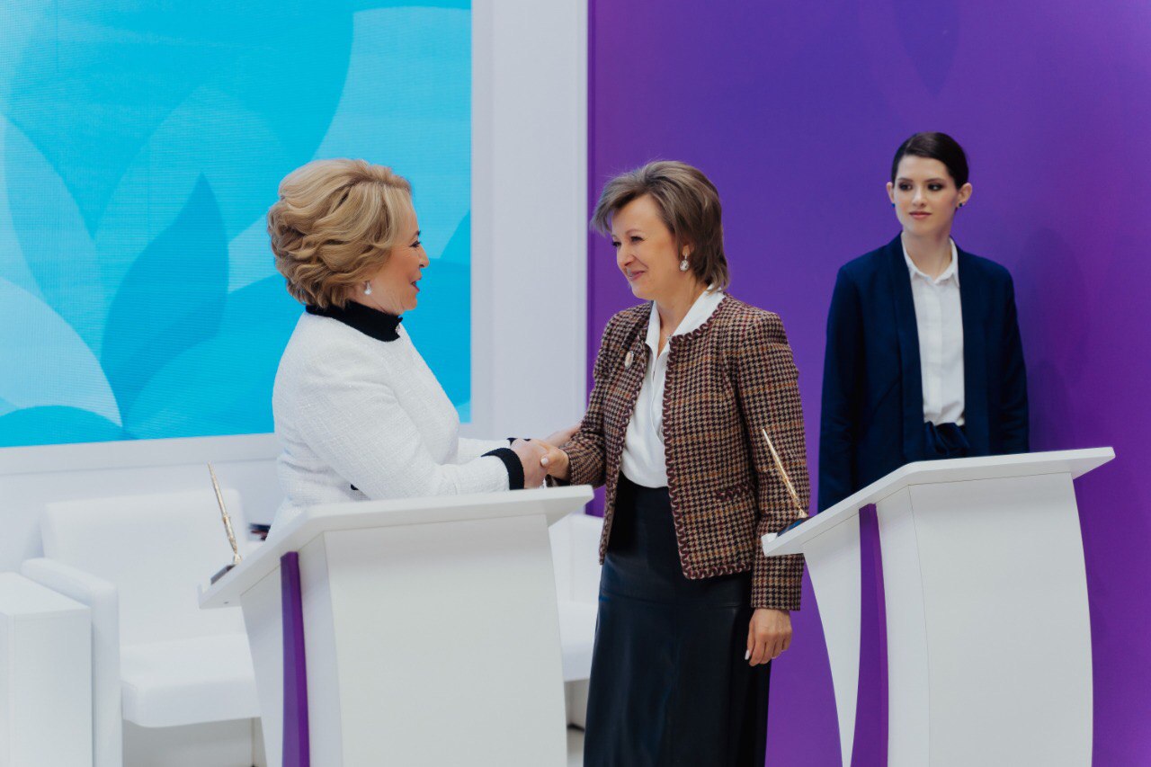 17 июня в рамках выездной сессии Евразийского женского форума на площадке Петербургского международного экономического форума соглашение о проведении ежегодного Всероссийского конкурса центров поддержки экспорта «Лидеры поддержки. Женщины в экспорте» подписали Председатель СФ В. Матвиенко и генеральный директор РЭЦ В. Никишина.