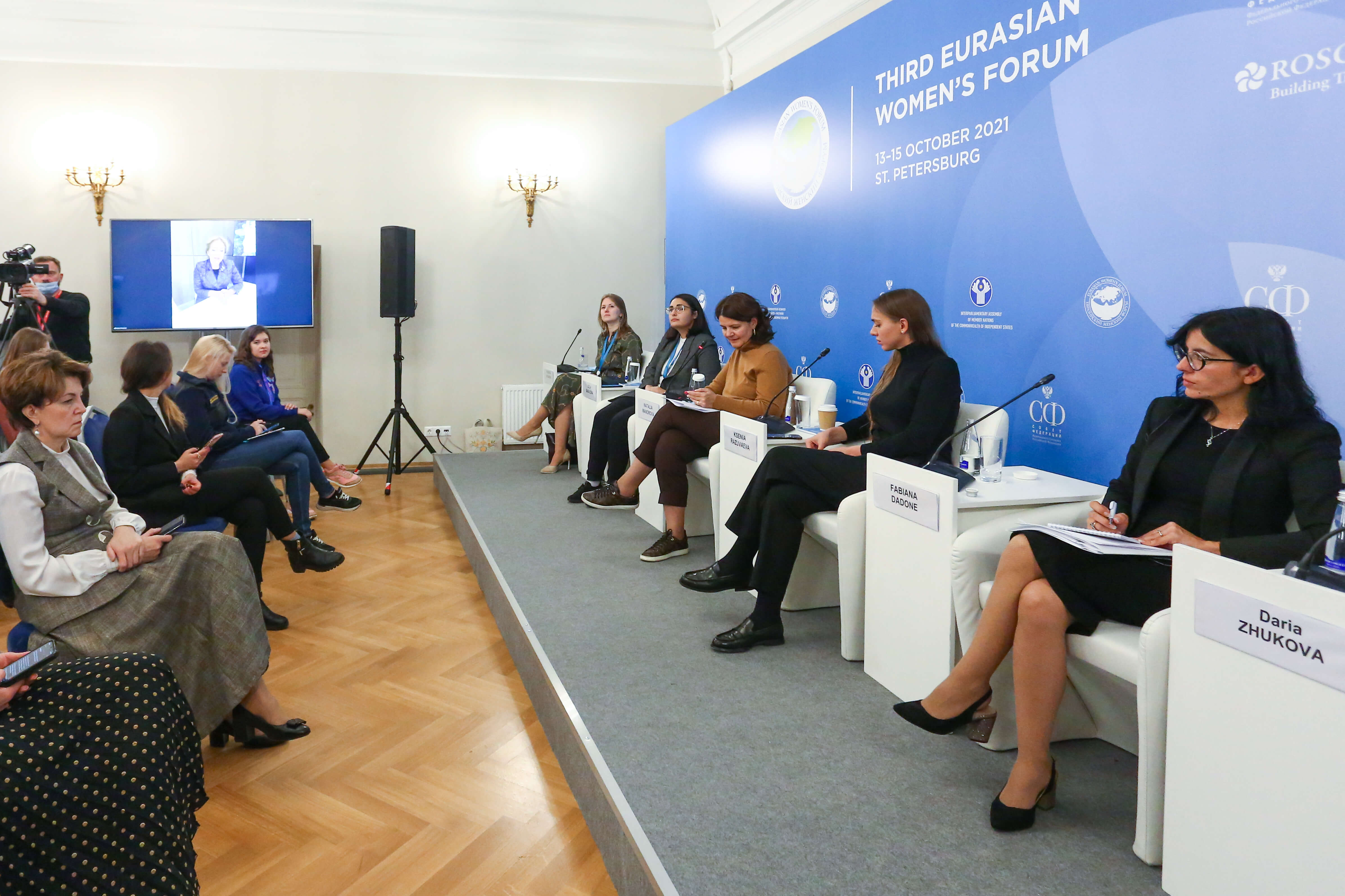 В мероприятии также приняла участие член Комитета Совета Федерации по федеративному устройству, региональной политике, местному самоуправлению и делам Севера Елена Авдеева, координатор программы «Волонтеры мира» Ассоциации волонтерских центров Лейла Бадалова, главный управляющий партнер по городскому развитию ВЭБ.РФ, генеральный директор Фонда развития моногородов Ирина Макиева, председатель Всероссийского общественного движения «Волонтеры-медики» Мария Якунчикова, Министр молодежной политики Итальянской Республики Фабиана Дадоне, представители общественных и международных организаций.