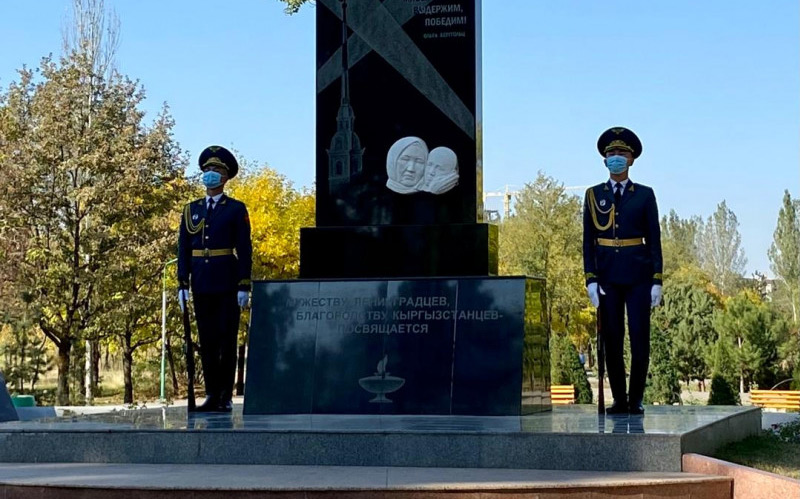 В 2012 году в Бишкеке увековечили память Токтогон Алтыбасаровой, которая в 1942-м приютила детей, эвакуированных из блокадного Ленинграда. Памятник представляет собой черную мраморную плиту, на которой выбиты лучи прожекторов над Невой и шпиль Адмиралтейства, чуть ниже — барельеф из белого мрамора: киргизская женщина держит на руках русского ребенка.