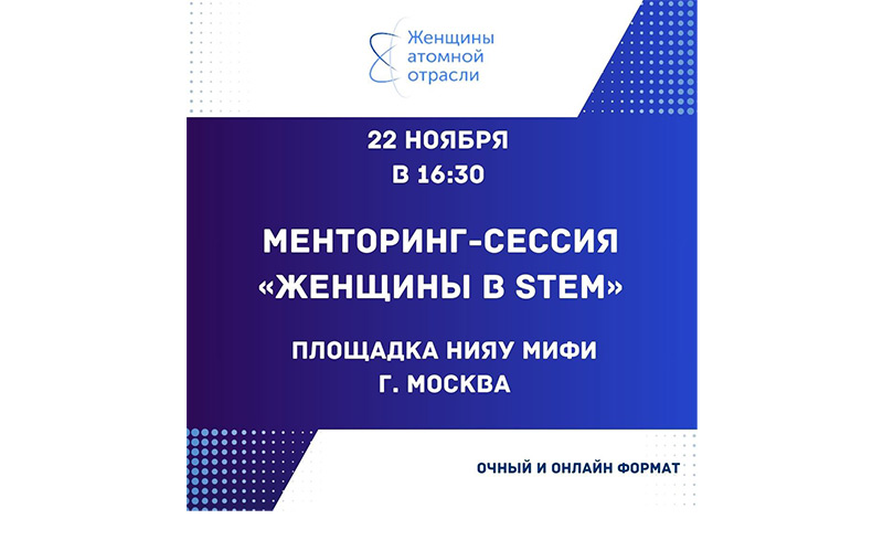 22 ноября Объединение женщин атомной отрасли в рамках проекта Совета ЕЖФ «Женщины в высокотехнологичных отраслях: новые возможности» проведет менторинг-сессию «Формируя будущее: программа наставничества для женщин в STEM».