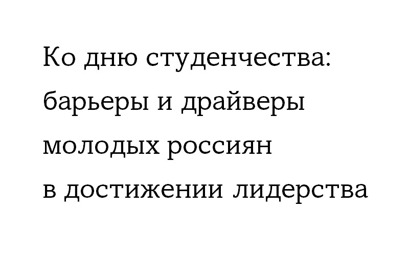 Большинство молодых россиян хотели бы стать лидером в своей профессиональной сфере. При этом во взглядах юношей и девушек на достижение лидерства наблюдаются заметные различия. Так, юноши в 3 раза чаще ценят славу и успех и в 2 раза чаще связывают лидерство с молодым возрастом. Девушки, в свою очередь, более требовательны к компетенциям, которые должны быть у потенциального лидера, и значительно чаще подвержены личным страхам и боязни ответственности.