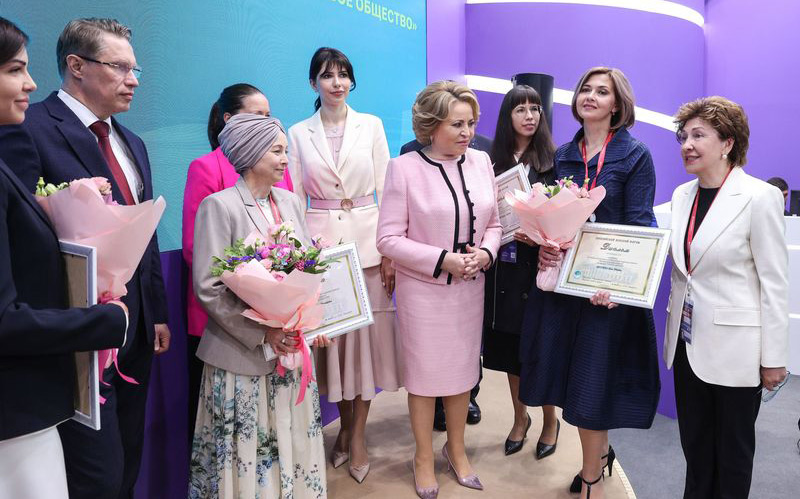 Авторов лучших инициатив чествовали на стенде Евразийского женского форума, дипломы и кубки победителям вручили председатель Совета Федерации Валентина Матвиенко и министр здравоохранения Михаил Мурашко.